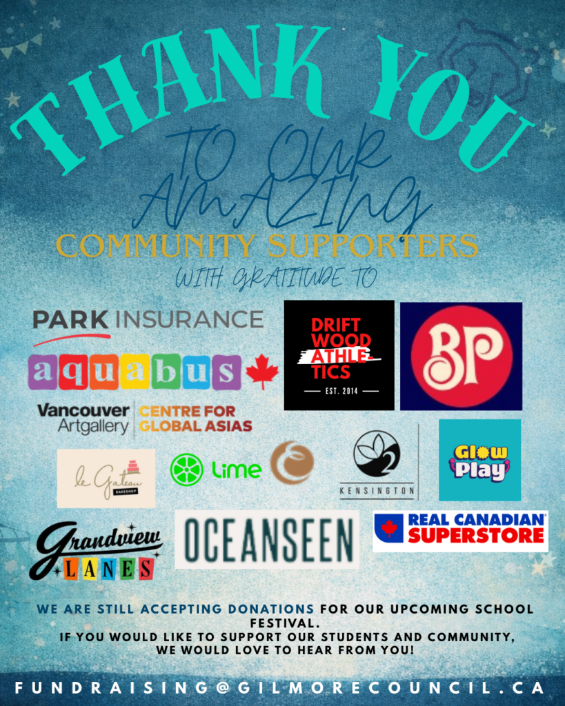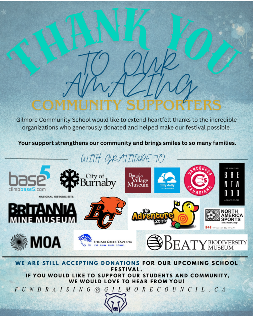 For over 110 years, Gilmore Community School has been at the heart of North Burnaby. Our Spring Festival brings together hundreds of local families for an evening of games, food and fun on the school grounds. We invite local businesses to partner with us and help make this community celebration unforgettable.